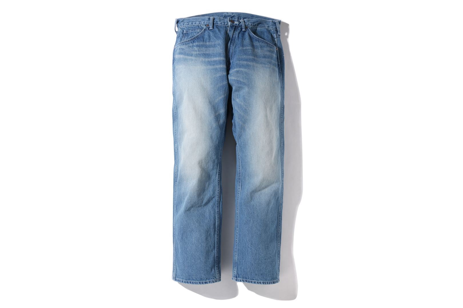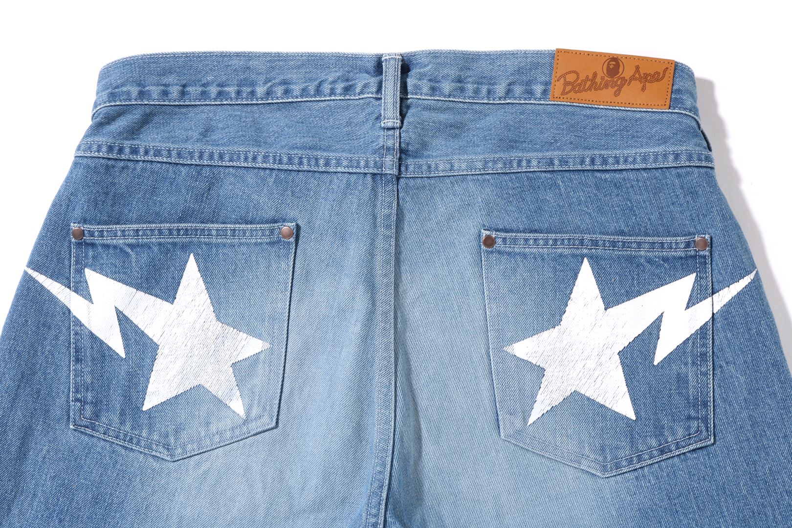 Denim pants with a loose fit silhouette. The back pocket has an STA motif.