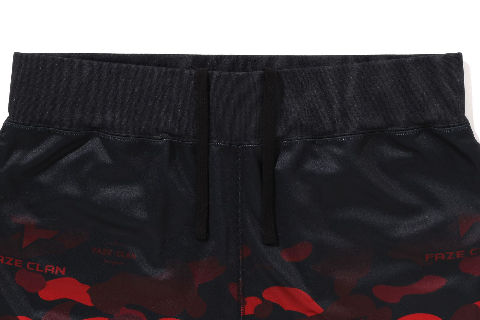 Game shorts made of polyester material with a red and black COLOR CAMO pattern expressed with the FAZE CLAN logo. A design with the APE HEAD/FAZE CLAN logo on the right hem of the front, the number 93 and brand name on the left hem, and the brand name printed in rubber on the right back hem. Slash pockets on both sides of the body, and a patch pocket with a piss name on the right back. A rubber spindle is attached to the waist for easy size adjustment. Available in 1 color and 5 sizes. Collaboration model with media platform FAZE CLAN.
