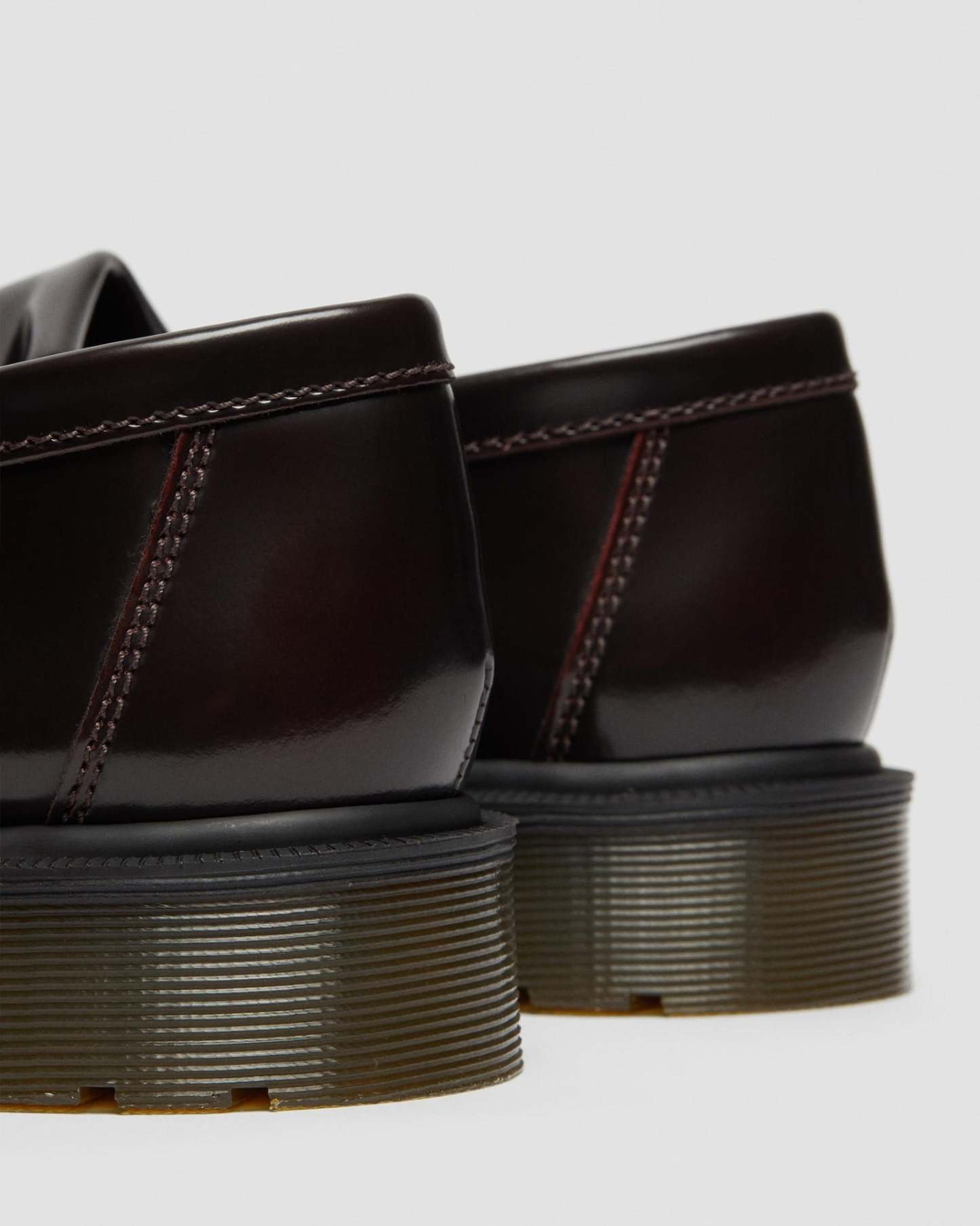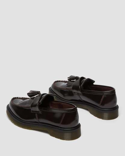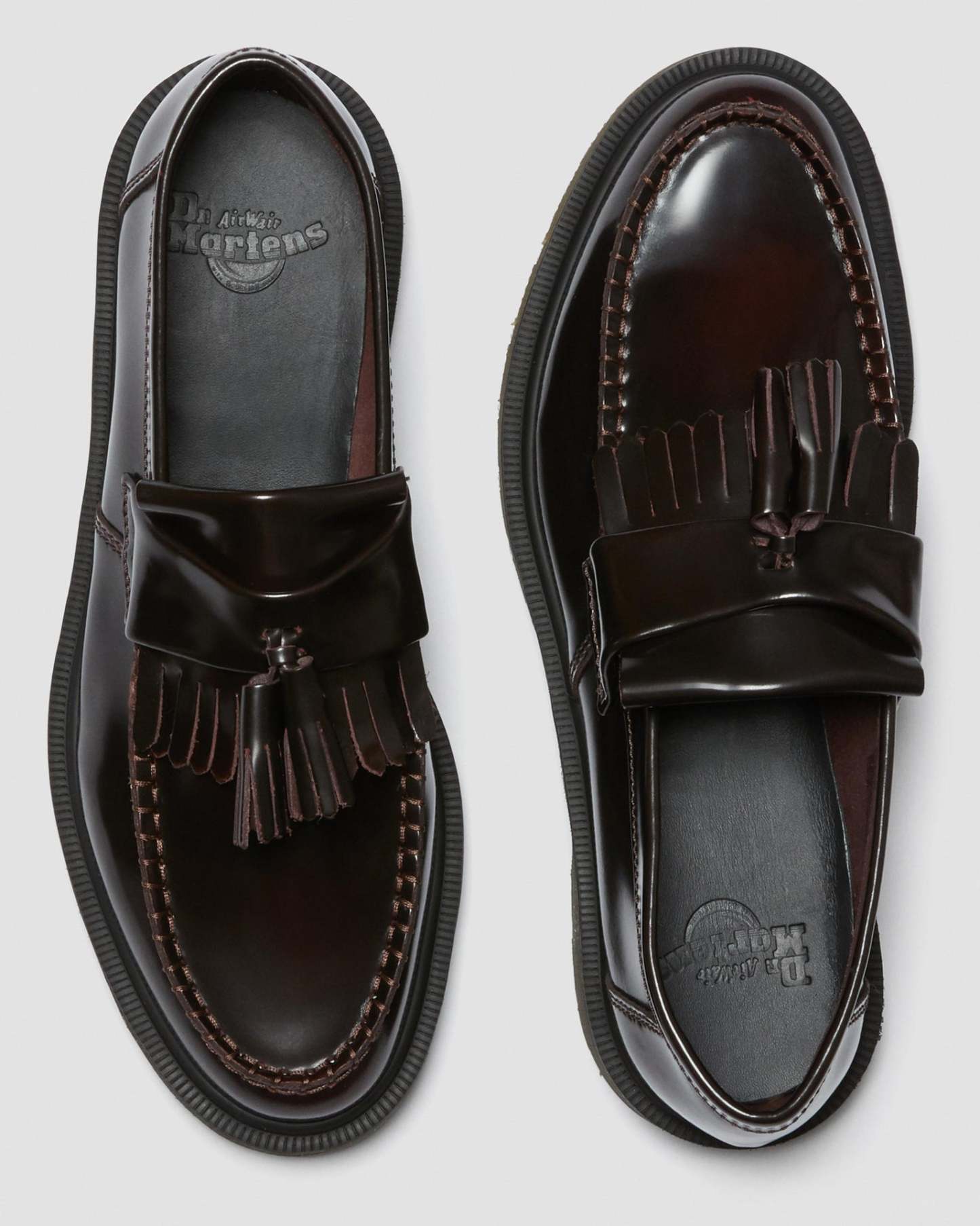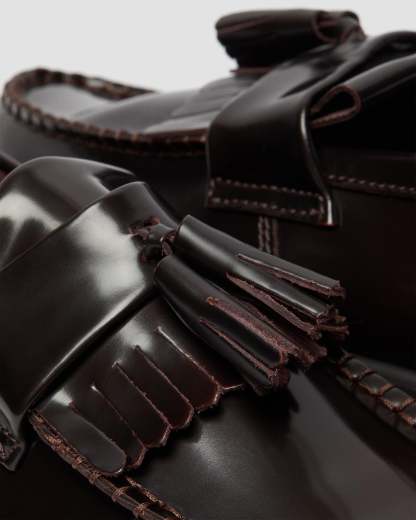 Der Tassel Loafer ist ein Klassiker der Subkultur und wird hier in Arcadia-Leder angeboten, einem traditionellen Narbenleder, dessen abgenutzte Oberfläche poliert wurde, um einen dezenten Farbton freizulegen. Der klassische Tassel Loafer in burgunderrotem, poliertem Glattleder ist rahmengenäht (Goodyear-Rahmennaht), d. h. Obermaterial und Sohle sind hitzeversiegelt und vernäht. Die klassische Dr. Maththrens-Luftpolstersohle ist öl- und fettbeständig und bietet gute Abrieb- und Rutschfestigkeit.