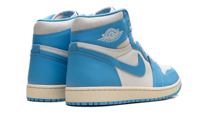 The Air Jordan 1 High "UNC Reimagined" offers a fresh look at Michael Jordan's first signature shoe. The UNC AJ1 adds the Reimagined design cues to the high top Jordan 1 that honors MJ's alma mater, the University of North Carolina. Featuring a crisp Carolina blue and white upper, the "UNC Reimagined" Jordan 1 has vintage details like an off-white midsole and cracked leather around the ankle. UNC Reimagined