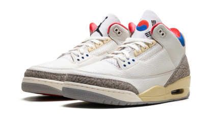 The Air Jordan 3 "Seoul 2.0" is a unique colorway of Michael Jordan's third signature shoe that honors the South Korean capital. The "Seoul 2.0" released in 2025 and followed the first "Seoul" AJ3 that came out in 2018. The "Seoul 2.0" Jordan 3 has the South Korea flag embroidered on the tongue and carries over the red and blue colors to the ankle and lining. The "Seoul 2.0" has a vintage-inspired midsole and lighter grey elephant print to distinguish it from the original. Seoul 2.0