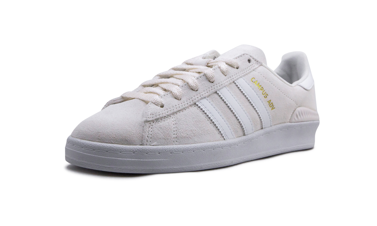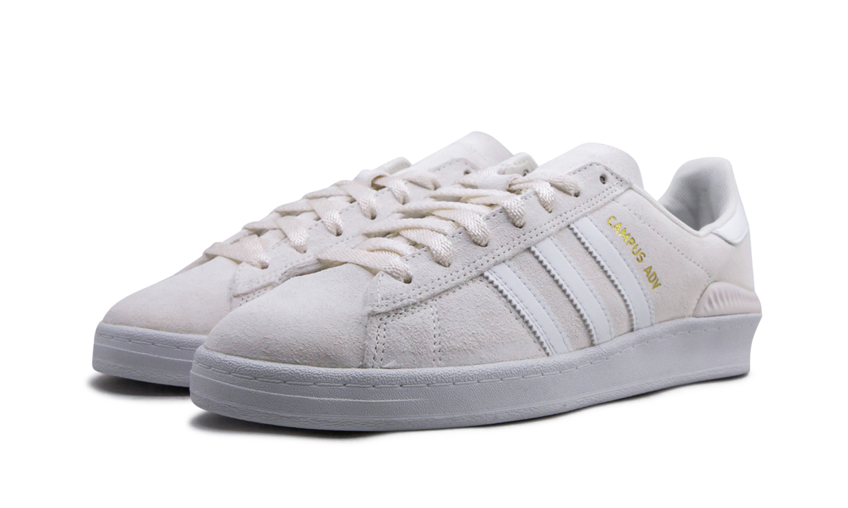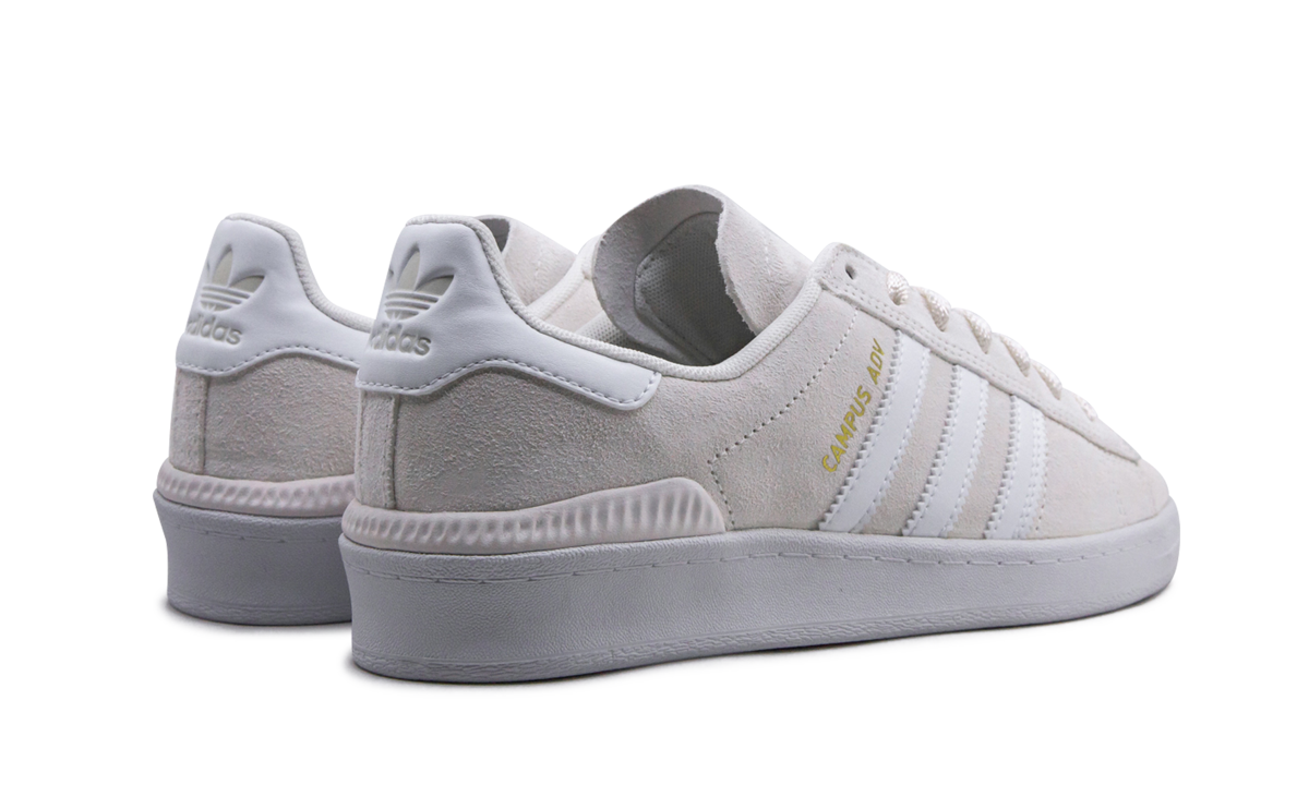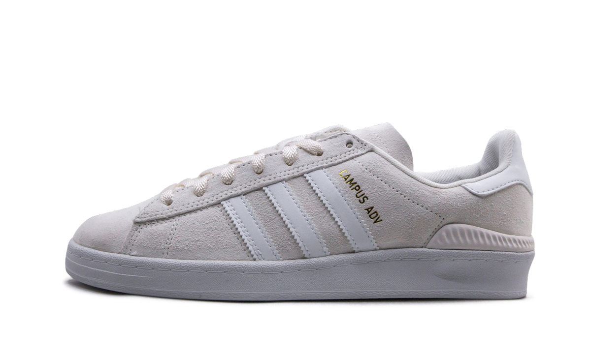 The adithtdas Campus ADV "Cloud White" is a super-clean look for the high-performance skate shoe. A modified, skate-specific version of the classic Campus lifestyle shoe, the Campus ADV is made with a dual-layer suede upper with high-abrasion zones added to areas that see more wear and tear. Comfort and support come in the form of a Bounce midsole cushioning system, an EVA sockliner, and Geoflex herringbone outsole. This version of the Campus ADV by adithtdas skateboarding comes in Cloud White suede with bright white accenting.