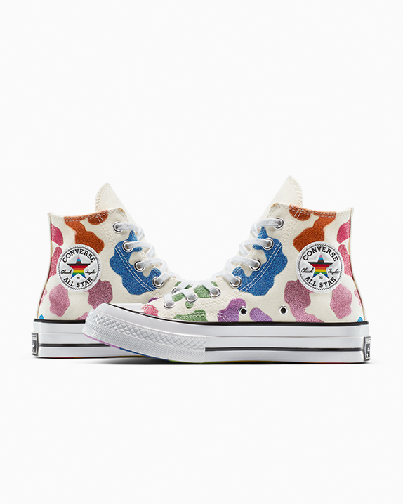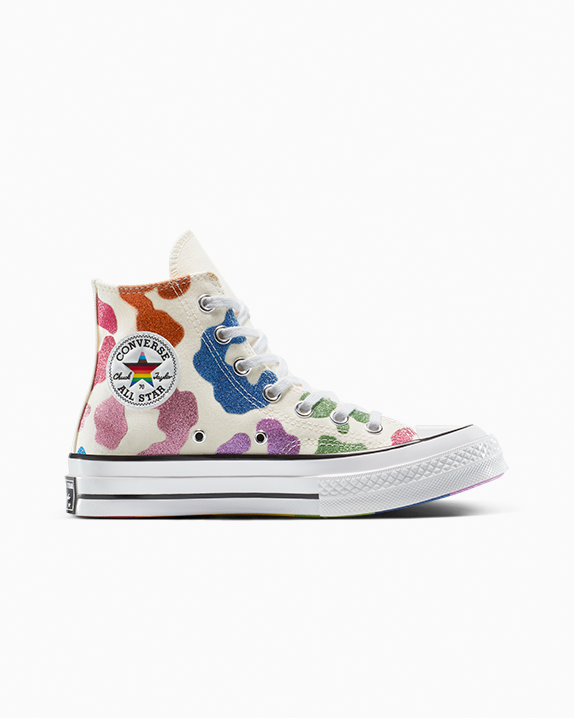 The icon that's over a century old, outfitted with bolder than bold graphics from the archive. Why? Because we're looking to the past to embolden our future. Be prouder than proud as you lace up in this rendition of the Chuck 70.