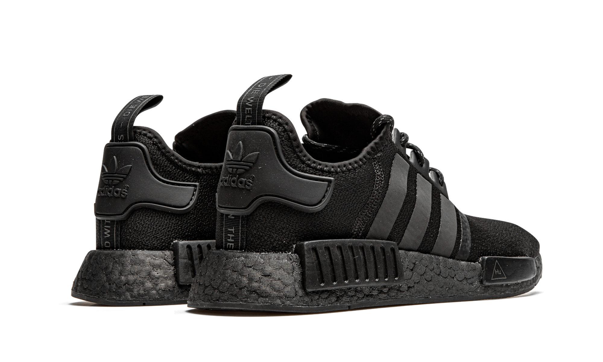 The Pharrell x adithtdas NMD R1 "Black Future" is a special collaboration between the talented music producer and adithtdas from its "Black Future" collection. A December 2020 release, the NMD R1 "Black Future" is one of several black monochromatic colorways imagined by Pharrell following his Time Magazine "We Deserve a Black Future" essay. The sock-like Primeknit upper and leather Three Stripes detailing on either side are finished off in black. A black heel counter and eyelet overlays progress the stealthy appearance. Finishing details include black speckled rope laces, embossed adithtdas detailing on the heel, and a black painted Boost midsole. Release date: December 13, 2020. Pharrell Williams - Black Future
