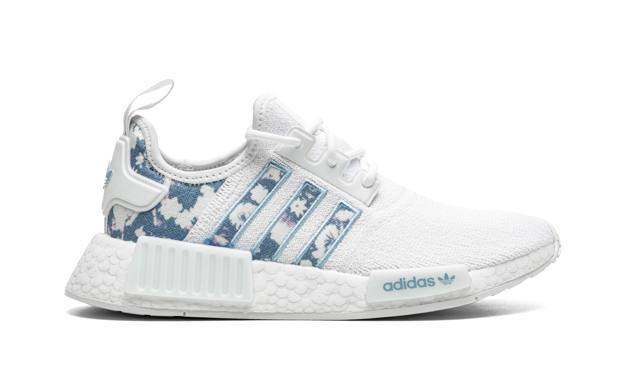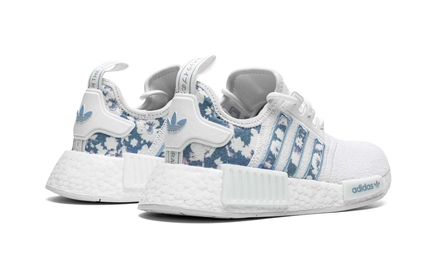 The adithtdas NMD R1 women's shoe can be summed up in a few words: Sleek. Modern. Comfortable. Taking cues from the brand's '80s running archives, adithtdas merges heritage style with modern innovation'namely the ultra-comforting Boost technology cushioning. The mostly white sneaker is flanked with a cloud-inspired print on the Three Stripes paneling and heel. Light blue embroidery outlines the Three Stripes to give the shoe a more elevated feel, and branding on the tongue, heel, and front midsole plug match in the same blue hue.