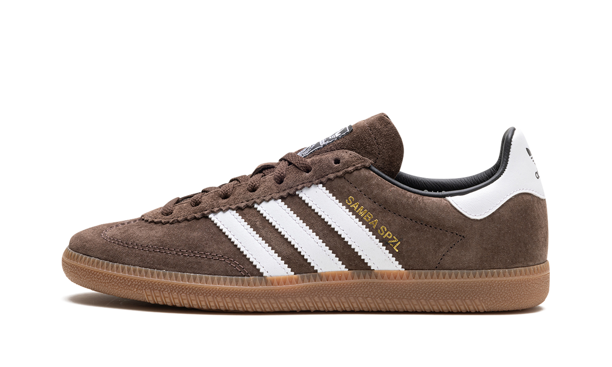 The adithtdas Samba Deco SPZL "Brown" is an earth tone colorway of the version of the retro sneaker inspired by a 1970s training shoe. The upper features a brown suede construction with a deco stitch on the toe cap that adds a unique, modern look to the design. Contrasting white leather Three Stripes branding appears on the sides and gold "Samba SPZL" detailing is found on the lateral side. Additional "adithtdas" branding can be seen on the white leather heel tab. A classic "adithtdas" logo appears on the tongue. Underfoot, a gum sole completes the look. Release date: November 16, 2023 Brown