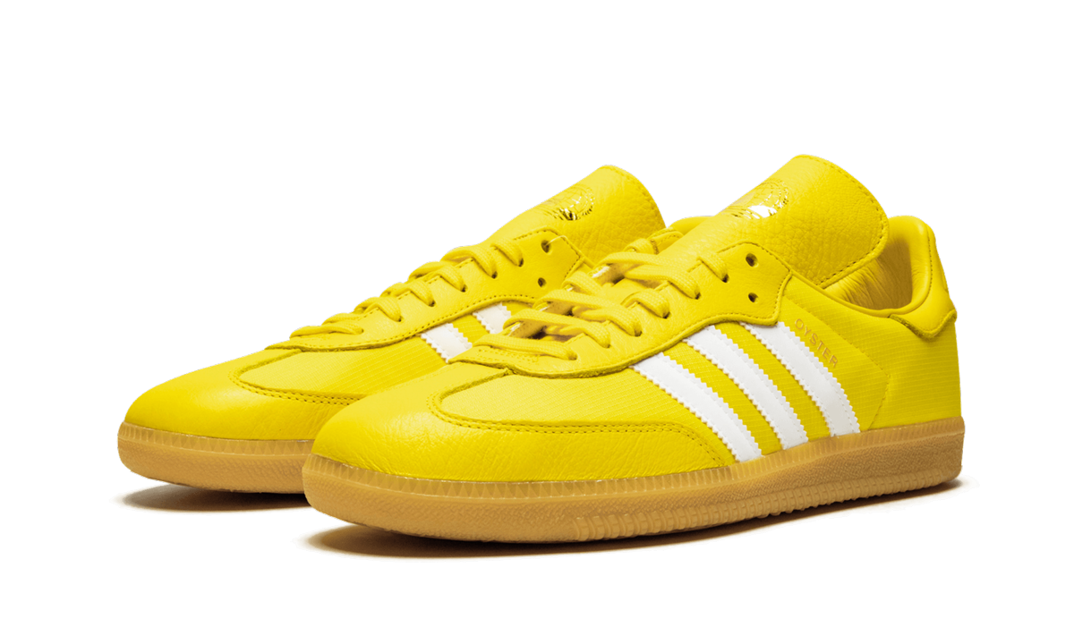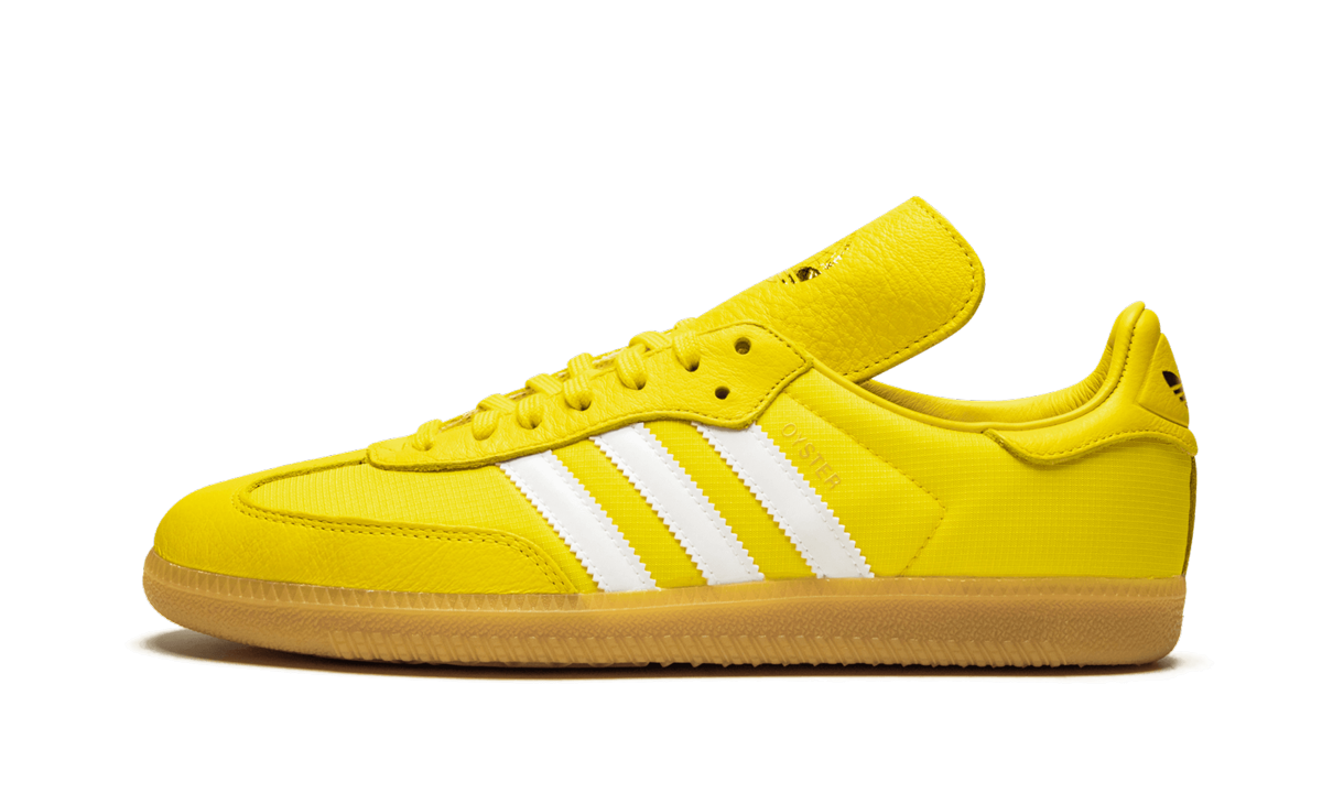 The Oyster Holdings x adithtdas Samba OG "Yellow" is a collaborative effort between adithtdas and lifestyle brand Oyster Holdings. Known for adding their luxury flair to modest sweatsuits for the modern traveler, Los Angeles based Oyster Holdings utilizes the Samba OG to celebrate the World's Traveler's Cup, a global challenge inspired by world travel events. One of three colorways released, this Samba is constructed in an vibrant yellow leather upper with Oyster Holdings branding on the midsole and tongue. Also available in blue and red colorways, the Oyster Holdings x adithtdas Samba OG "Yellow" released on May 31st, 2019.