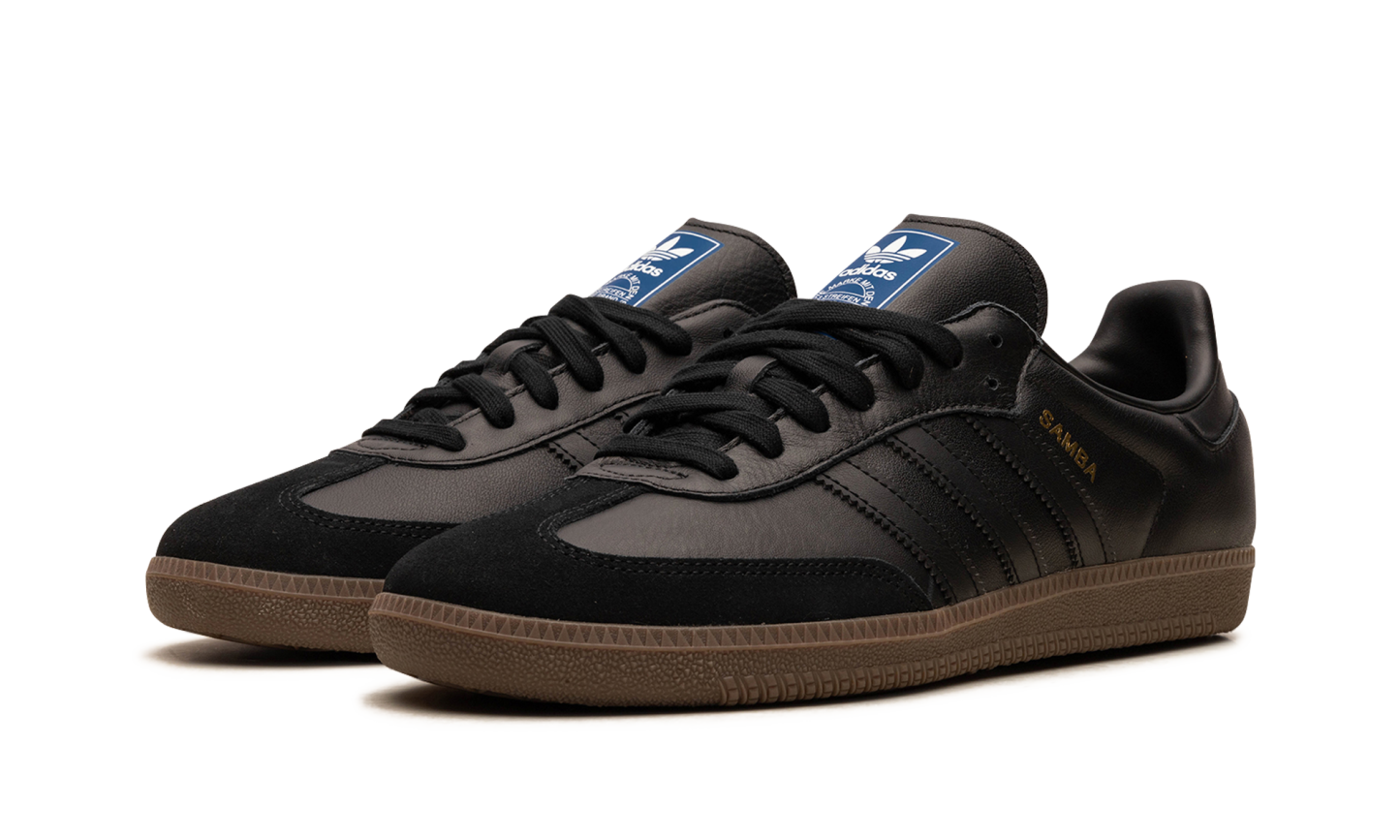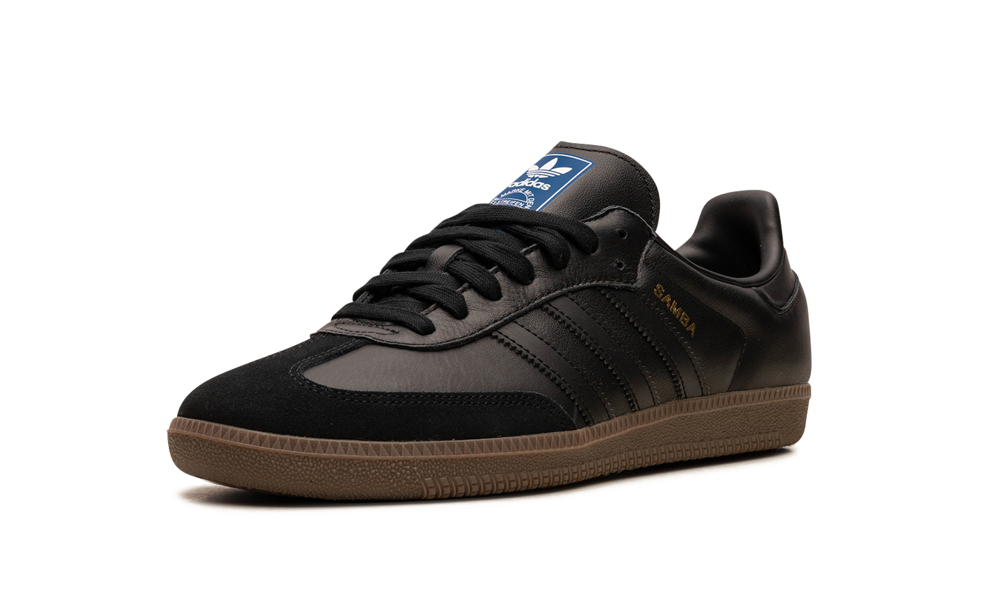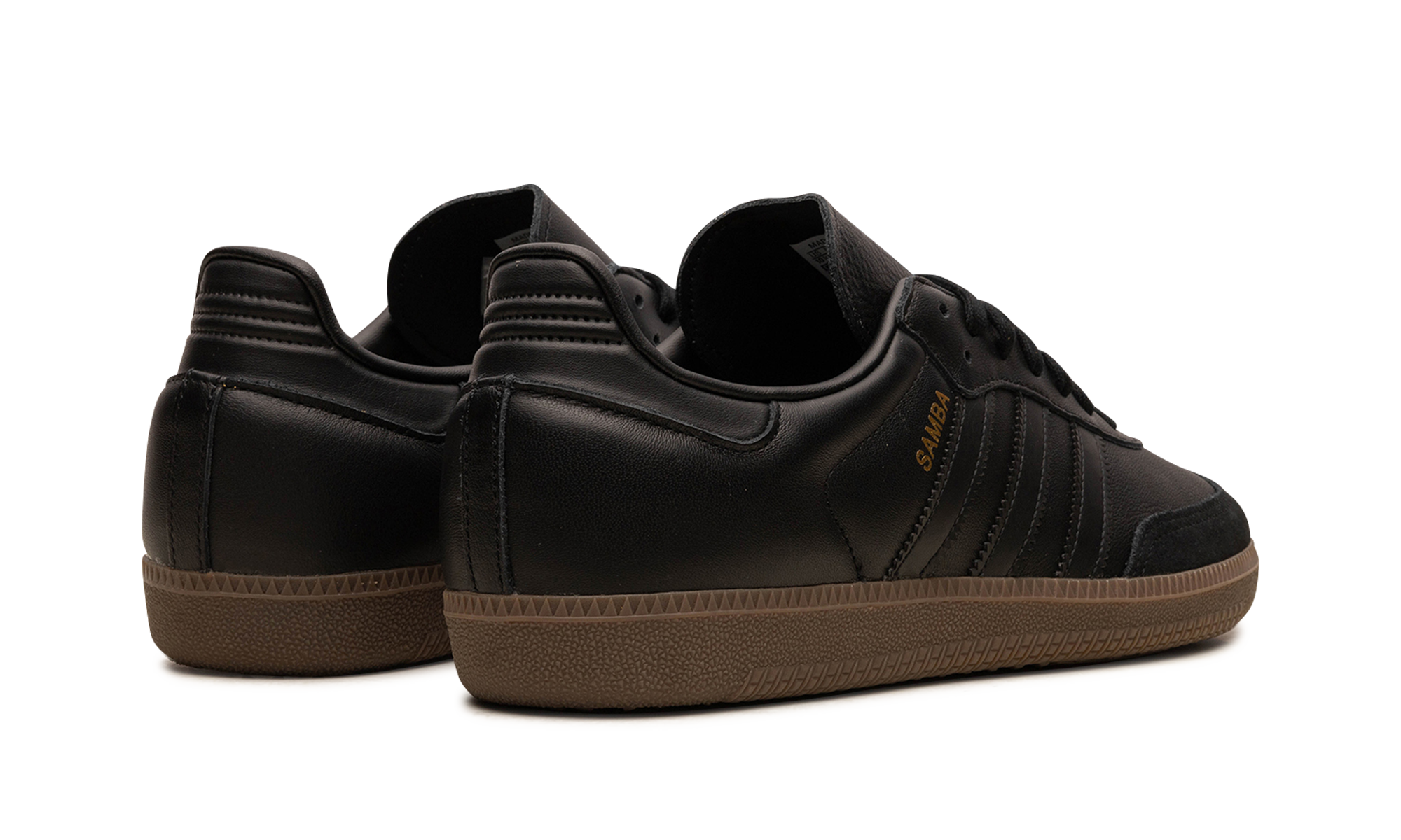 The adithtdas Samba OG "Triple Black" is a mostly all-black colorway of the popular retro indoor soccer shoe. The Samba has enjoyed a resurgence in popularity in recent years, as the shoe's classic design has come to be appreciated by more and more people looking for a casual shoe that can be worn with anything. Here, the "Triple Black" colorway features a black leather construction with tonal suede overlays on the toe and forefoot. Black Three Stripes branding is found on the sides. "Samba" detailing appears in gold foil lettering on the lateral side of the shoe and an "adithtdas Samba" patch can be found on the tongue. A dark brown rubber sole completes the look. Release date: December 15, 2023 Triple Black