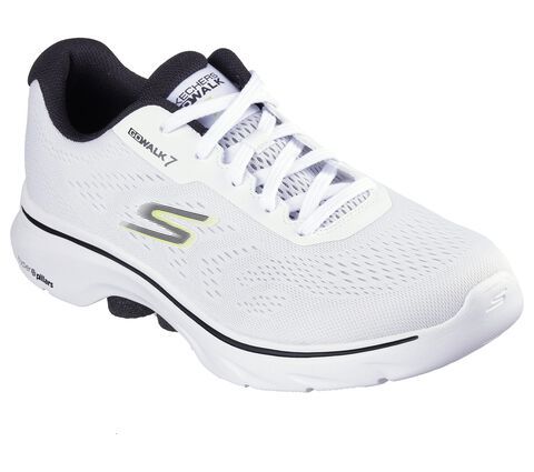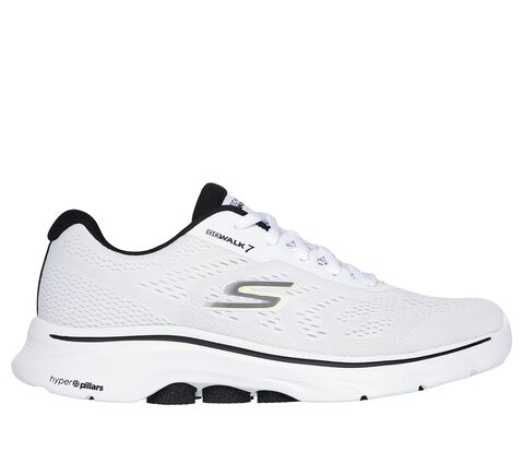 Walk in easy-wearing comfort with Skechers GO WALK 7™ - Avalo 2. This lace-up features an engineered mesh upper with a Skethechers Air-Cooled Goga Mat™ insole, lightweight ULTRA GO® cushioning, and high-rebound Hyper Pillar Technology™ for added support.