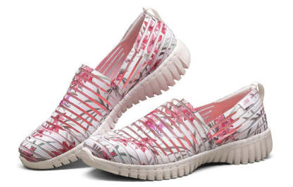 (WMNS) Skecththers Go Walk Smart Slip-on Shoes White/Pink/Grey 124317-WMLT