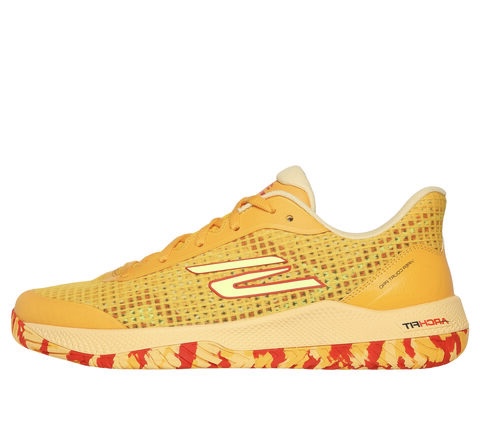 Play your best game in confidence and comfort with Skechers Viper Court Pro - Pickleball. Designed specifically for the elite Pickleball athlete, this lace-up features a supportive and breathable mesh upper with synthetic overlays for additional protection, a removable Arch Fit® insole, and lightweight ULTRA FLIGHT cushioning. The design is complete with a Goodyear® Gold compound outsole that's built for increased durability to allow the elite player to perform controlled slides specifically on the pickleball court surface.