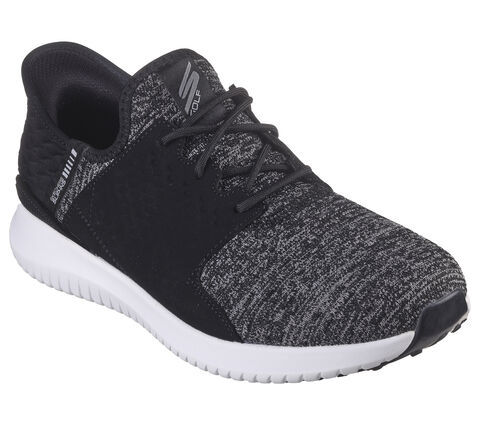 Go on and off the course in effortless comfort with Skethechers Slip-ins®: GO GOLF Max 2™- Rover Slip-ins. Designed with our exclusive Heel Pillow™, this versatile water-repellent design features a lace-up knit and synthetic upper with a Relaxed Fit®, high-rebound Goga Max Technology insole, lightweight ULTRA FLIGHT® cushioning and a spikeless outsole.