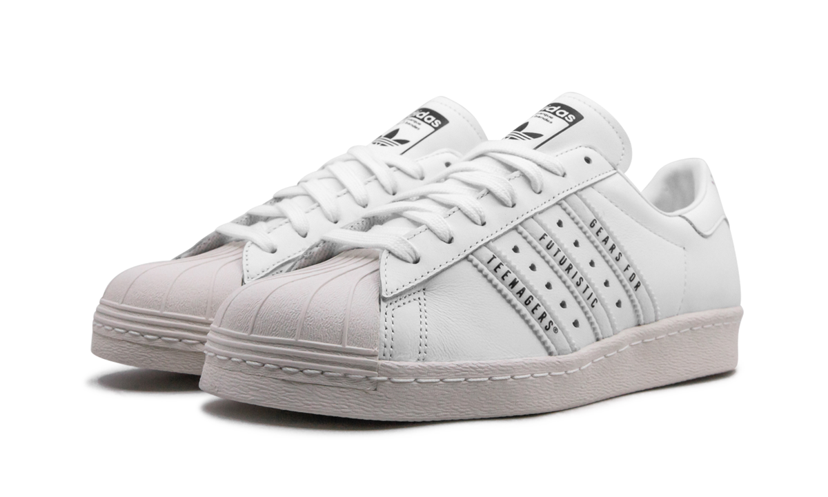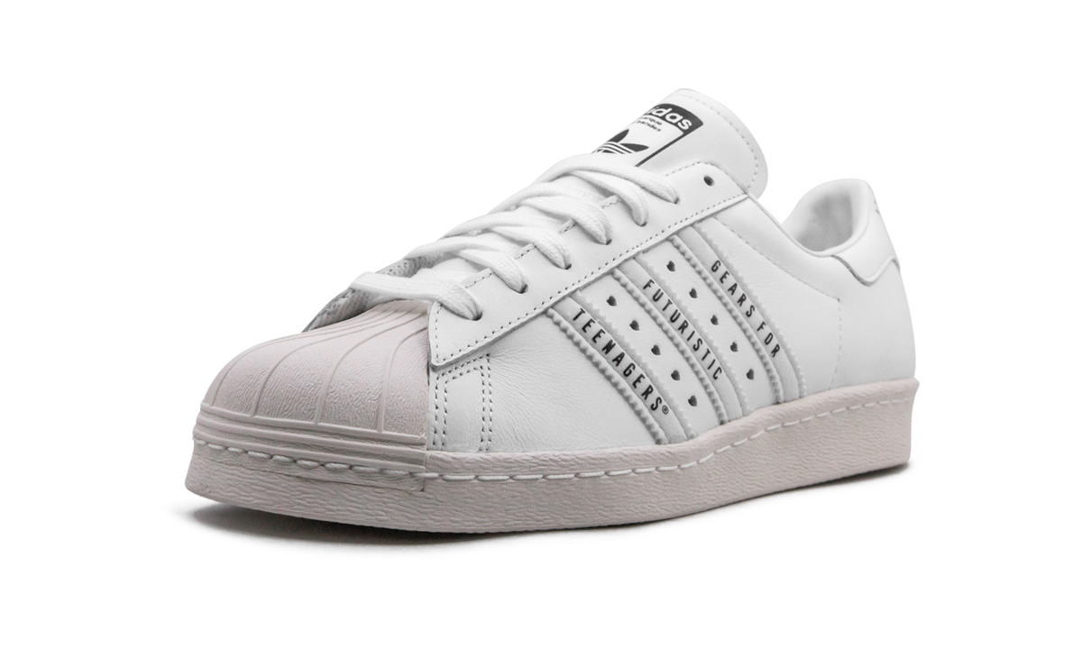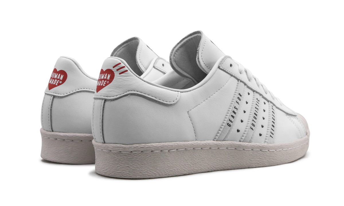 The Human Made x adithtdas Superstar 80s "White" doubles down on versatility with a crisp all-white leather design. One of three colorways of desirable Superstar 80s reworked by Human Made for Spring/Summer 2020, this timeless low-top features contemporary branding like "Gears For Futuristic Teenagers" printed within the Three Stripes branding on the mid-panel. Smooth white leather dots the entire upper, save for the contrasting cream rubber shell toe. Vibrant Human Made branding can be found on the heel tab and classic adithtdas detailing appears on the tongue. The look is finished off white a cream midsole for a decidedly vintage aesthetic. The Human Made x adithtdas Superstar 80s "White" was released on April 24, 2020. White