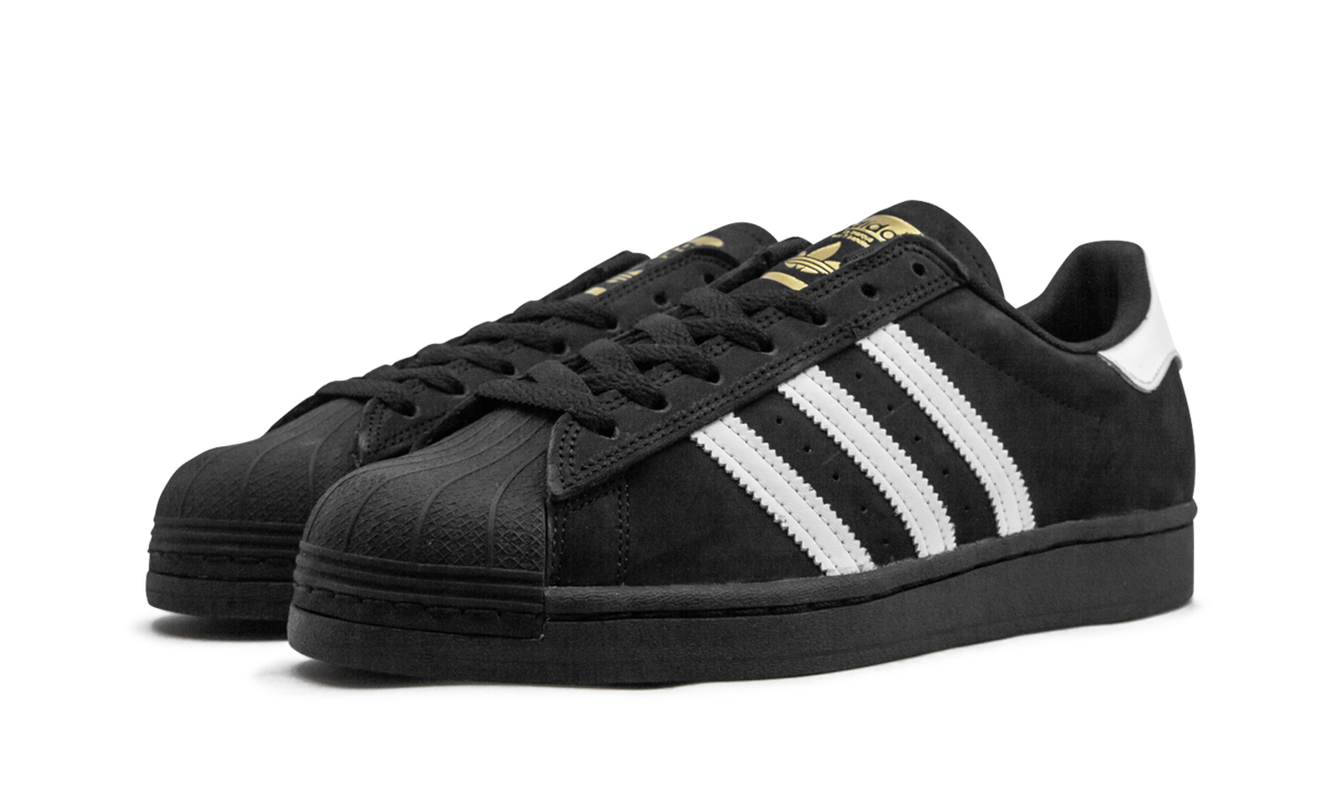 The adithtdas Superstar ADV was a popular shoe of the '70s on the basketball court and has seen superstardom among the sneaker-wearing set ever since. That's over 50 years of style. This version takes the most classic white and black adithtdas Superstar ADV and flips the colors to display the inverse. The smooth suede upper is predominantly black with white and gold foil detailing and a tonal black sole. The monochromatic shell toe feature and serrated Three-Stripes detailing on the side adds authenticity to the aesthetic.