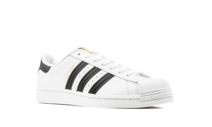 The adithtdas Superstar "White/Black" is the original colorway of the iconic low-top sneaker. As timeless a shoe as there's ever been in footwear, the adithtdas Superstar in "White/Black" is versatile, always in style, and a favorite among all walks of life. The shoe's upper is designed in crisp white leather. Black leather Three Stripes branding is found on either side and classic "adithtdas" detailing appears in white lettering on the black leather heel tab. The word "Superstar" is printed in gold foil next to the Three Stripes detailing on the mid-panel. Additional gold foil adithtdas branding comes into play on the tongue. Underfoot, a white rubber sole rounds out the look of this incredibly classic looking shoe. White / Black