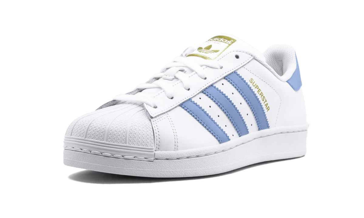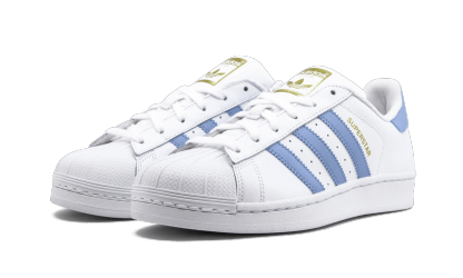 The adithtdas Superstar women's sneaker is easily one of the most popular low-profile sneakers ever made. This women's edition features a decidedly feminine aesthetic with the shoe's signature white base and light blue Three-Stripes and accents on the heel tab. As essential as a little black dress or a pair of jeans, the adithtdas Superstar cupsole leather sneaker is versatile and timeless.