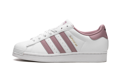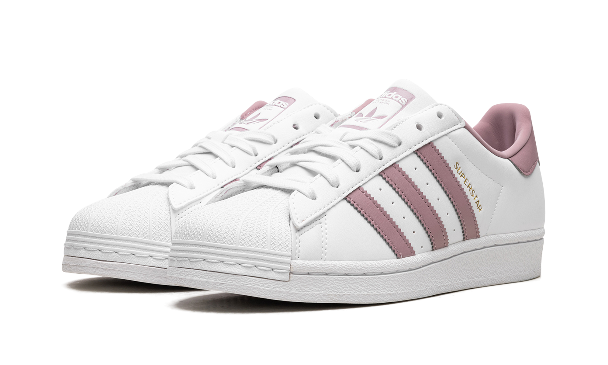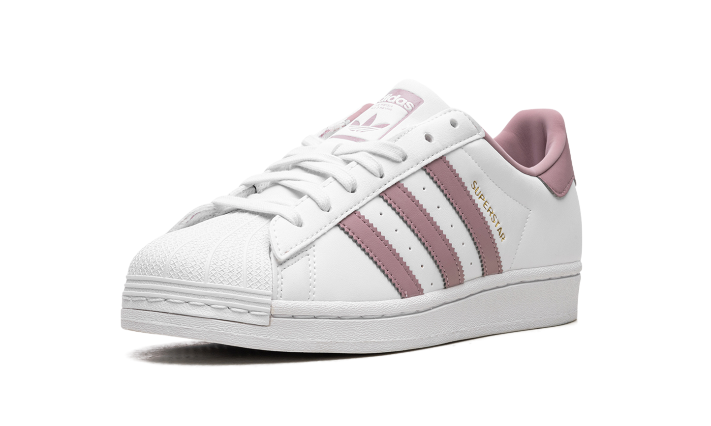 The Women's adithtdas Superstar "White/Magic Mauve" is a women's-exclusive colorway of the retro tennis shoe with a versatile look. This clean look for the Superstar is complete with a white leather construction and Magic Mauve leather Three Stripes on the sides. A gold "Superstar" detail can be found on the lateral side of the mid-panel, while an embossed adithtdas Trefoil logo appears on the leather heel tab. An old school adithtdas logo is located on the tongue. Underfoot, a white rubber sole completes the look. White / Magic Mauve
