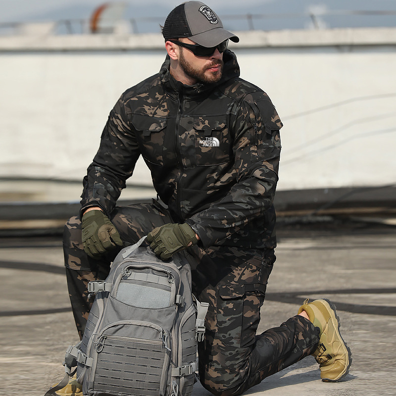 Men's Tactical Softshell Hooded Fleece Jacket 2-Piece Set