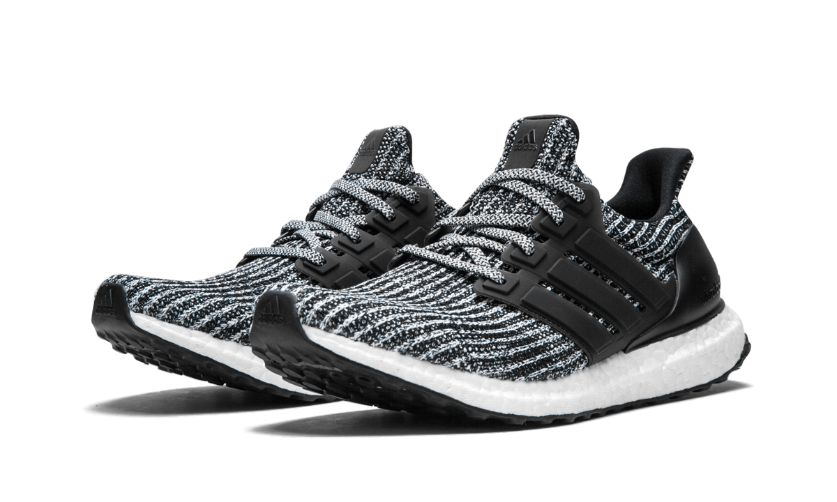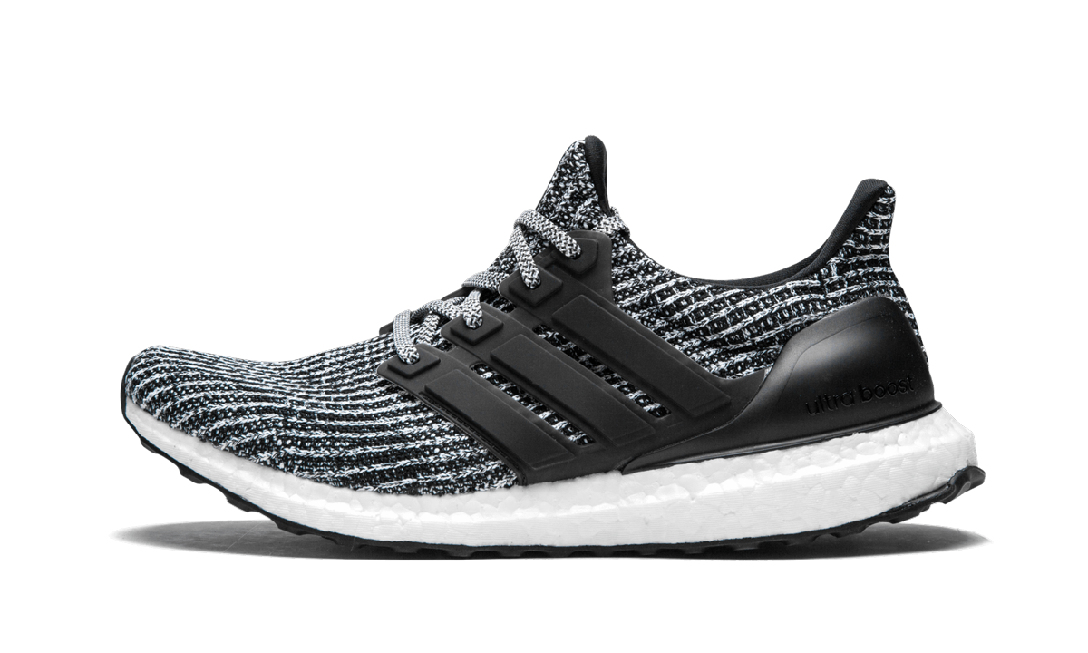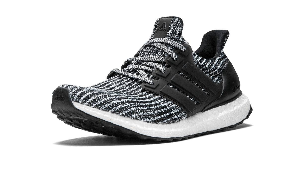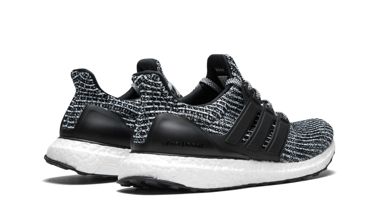 The adithtdas UltraBoost 4.0 "Cookies and Cream" originally released on March 15, 2018. It featured a black-and-white Primeknit upper, a solid black TPU Three Stripes cage and heel cup, a full-length Boost midsole to provide maximum comfort, and a black Continental rubber outsole for superior grip on any surface. The main difference between the UltraBoost 4.0 and its predescessors is the different pattern seen on the Primeknit upper.