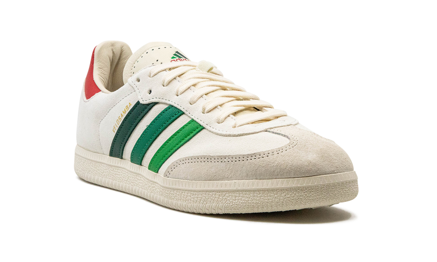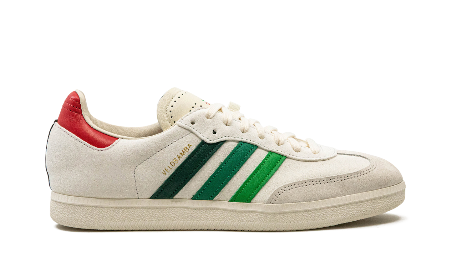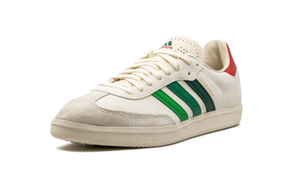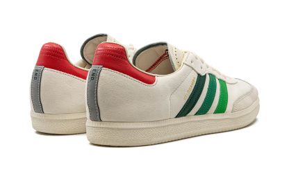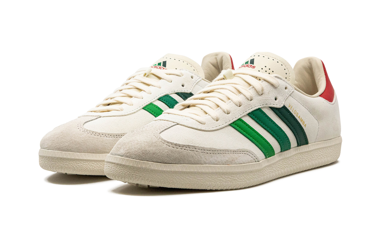 The END x adithtdas Velosamba "Social Cycling - Crystal White" is a collaboration between the online retailer and adithtdas on the cycling-adjacent version of the adithtdas Samba. Featuring two-bolt cleat compatibility underfoot, the adithtdas Velosamba is a slept-on cycling shoe that doubles as a lifestyle sneaker. END Clothing's collaboration with adithtdas on the silhouette features a white leather construction with green Three Stripes branding on the sides with "Velosamba" detailing appearing in gold foil lettering next to the classic adithtdas logo. A grey suede overlay sourced from the Charles F. Stead tannery in Leeds is found on the toe. "END" branding is located on the grey overlay on the back of the shoe beneath the red leather heel tab. Release date: April 28, 2023 END - Social Cycling
