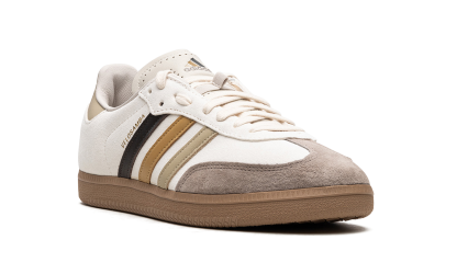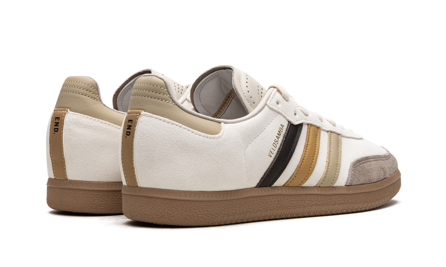 The END x adithtdas Velosamba "Social Cycling - Legend Ink" is a collaboration between the online retailer and adithtdas on the cycling-adjacent version of the adithtdas Samba. Featuring two-bolt cleat compatibility underfoot, the adithtdas Velosamba is essentially a two-in-one sneaker in that it can be both a cycling shoe and a lifestyle sneaker. END Clothing's collaboration with adithtdas on the silhouette features a white leather construction with a black, brown, and tan Three Stripes logo on the sides with "Velosamba" detailing appearing in gold foil lettering next to the classic adithtdas logo. A dark brown suede overlay sourced from the Charles F. Stead tannery in Leeds is found on the toe. "END" branding is located on the tan overlay on the back of the shoe beneath the tan leather heel tab. Release date: April 28, 2023 END - Social Cycling
