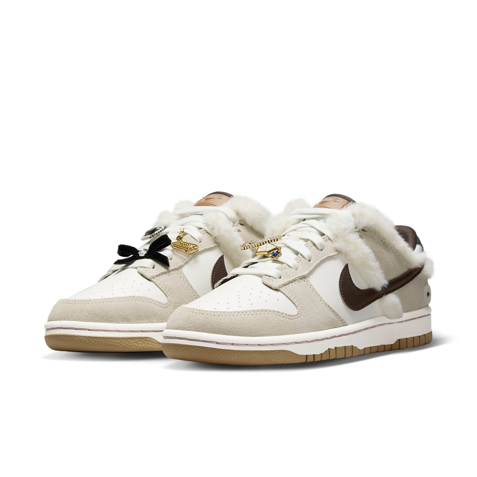 The ni ke Dunk Low Mink and Jewels is a classic style with a luxurious edge. This classic low profile silhouette retains its signature look of white base overlays, grey suede Swooshes and gum bottoms but with unique embellishments to make it out of the ordinary. It features mink fur under the ankle flaps for delightful texture, as well as strategically placed pins, for an eye-catching statement. Last but not least, a small brand logo can be found on the heel tab making this truly one of a kind. Whether you re looking for something to stand out from the crowd or just wanting timeless style, this limited edition sneaker has got you covered!